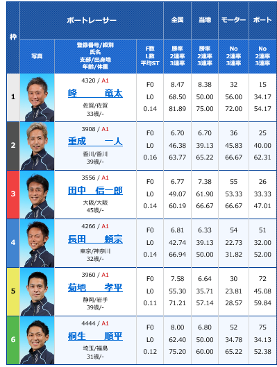 機力も良くて、4コースからの差しが届くであろう寺田選手は絶対に舟券からは外せません。